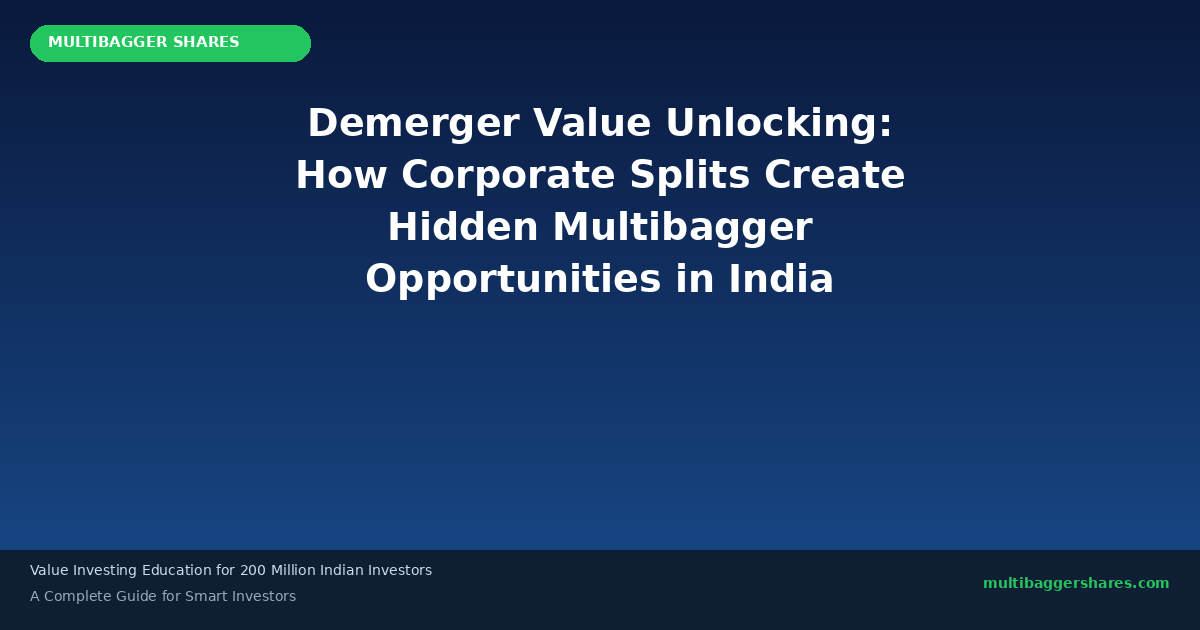 The key is to do your homework before the demerger is announced or becomes widely known. Once a demerger is publicly announced, much of the value unlock gets priced in quickly. The biggest returns go to investors who identify potential demerger candidates early โ by looking for conglomerates with clear conglomerate discounts and diversified business portfolios.