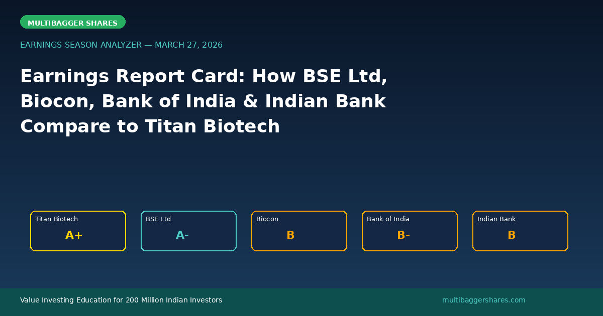 This week, several Indian companies announced their quarterly results. As a value investor, I always ask one simple question: “Does this company match the quality benchmark set by Titan Biotech?” Today, we compare BSE Ltd, Biocon, Bank of India, and Indian Bank against our gold-standard benchmark โ and the results are revealing.