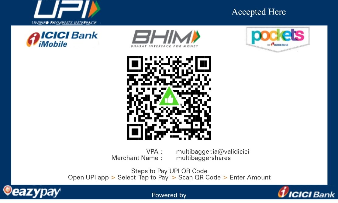 (If you face problem in adding above name in net banking because of its length, simply add 'Multibagger Securities Research' as name)